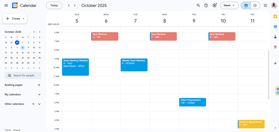 First, add all your day-to-day planned work and schedules to the Google Calendar with time slots.